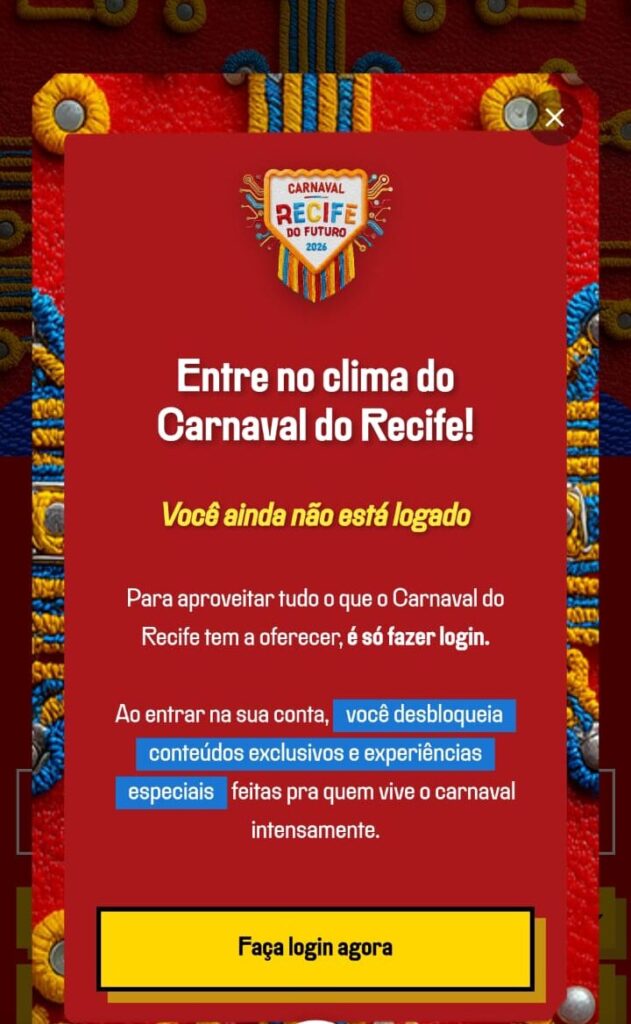 O Carnaval do Recife passa a contar, em 2026, com novas funcionalidades digitais no Conecta Recife, plataforma da Prefeitura voltada a serviços e informações para a população. A iniciativa inclui a criação de um perfil digital do folião, com possibilidade de inserir foto, dados básicos e aplicar temas personalizados com mensagens como “Tô solteiro” e “Primeiro Carnaval”. A ferramenta foi desenvolvida para uso no celular e busca acompanhar os usuários durante os dias de festa, com recursos de personalização e interação.