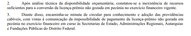 Os servidores do Governo do Distrito Federal perderão o direito de converter períodos não usufruídos da licença-prêmio em pecúnia devido à “reorganização financeira orçamentária” imposta pelo Palácio do Buriti para 2026. A medida consta em memorando da Secretaria de Economia enviado ao gabinete do governador Ibaneis Rocha (MDB) e obtido pelo portal Vero Notícias.