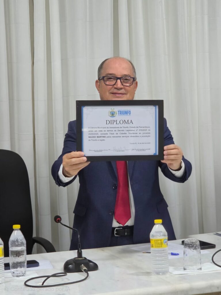 A cerimônia de entrega do meu título de cidadão triunfense está sendo realizada neste momento, no plenário da Câmara Municipal de Triunfo, com transmissão ao vivo pelo canal oficial da Casa no YouTube. A homenagem, de iniciativa do vereador José Carlos Solon, reconhece minha trajetória na comunicação e os vínculos construídos com o município. O público pode acompanhar a solenidade em tempo real pelo link abaixo: