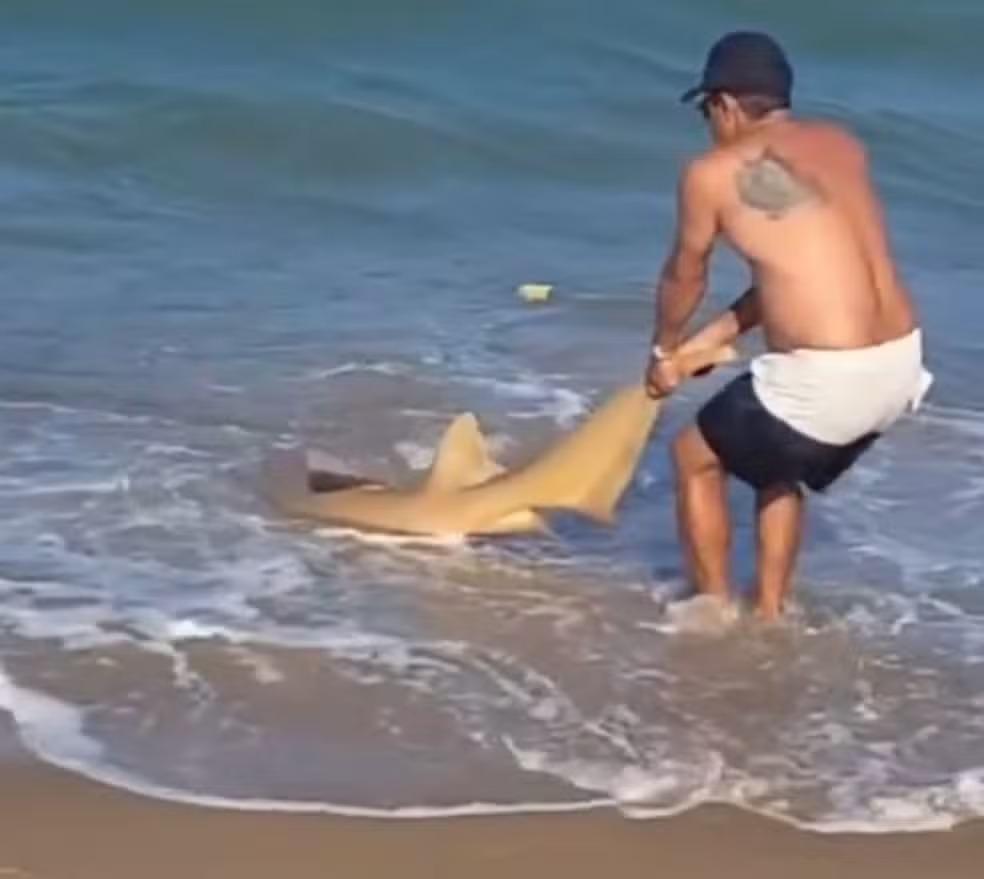 Na tarde da quarta-feira (31), o pescador Wellington Maia, de 53 anos, se deparou com um tubarão-lixa de quase dois metros preso ao seu anzol. Durante uma pescaria com isca viva, o animal foi “pescado” por engano e arrastado para a areia. Com mais de 30 anos de experiência com pesca esportiva, Wellington decidiu tirar o anzol da boca do tubarão para evitar danos maiores ao animal marinho. As informações são do g1.