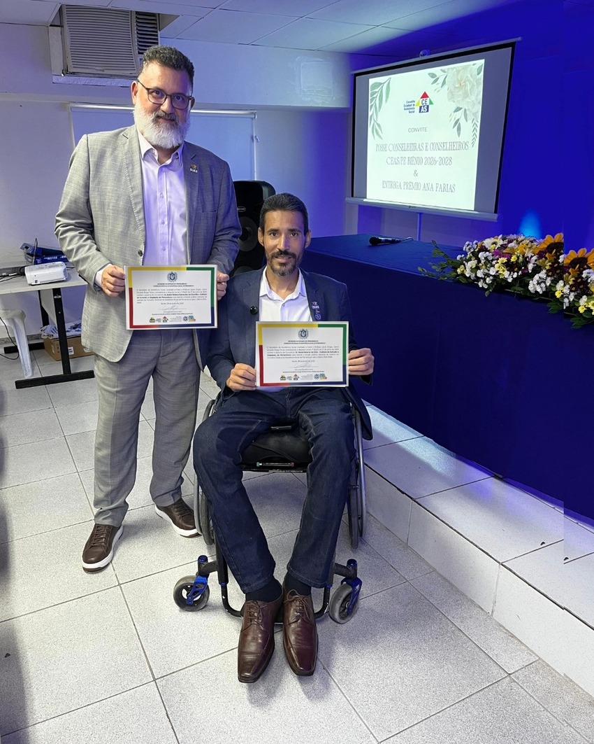 O diretor-presidente do Instituto de Integração e Inclusão da Pessoa com Deficiência de Pernambuco (IICPE), Geziel Bezerra, e o diretor jurídico, André Carvalho, tomaram posse para mais um mandato como conselheiros do Conselho Estadual de Assistência Social (CEAS-PE), no biênio 2026–2028. No novo ciclo, o Instituto afirma que seguirá atuando pela construção de um Sistema Único de Assistência Social (Suas) mais inclusivo e comprometido com a garantia de direitos das pessoas com deficiência.