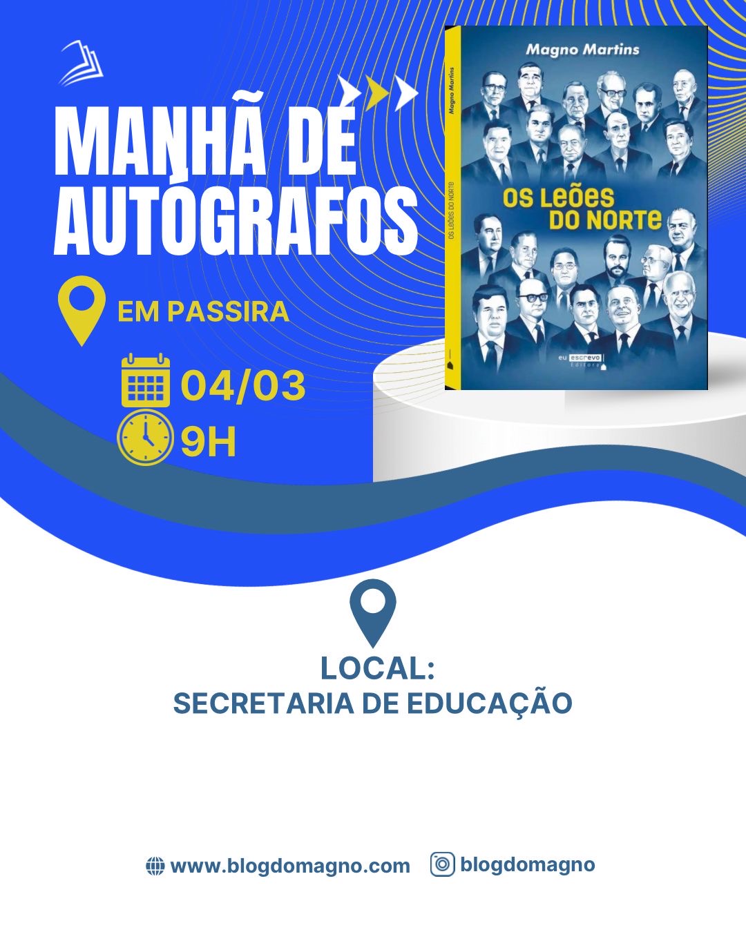 Na tarde de hoje, o município de Panelas, no Agreste, sediou a tarde de autógrafos do meu livro “Os Leões do Norte”, pela editora Eu Escrevo. A programação, organizada pela Prefeitura por meio da Secretaria Municipal de Educação, reuniu alunos e professores da rede municipal em um grande encontro voltado à difusão da obra nas escolas do município.