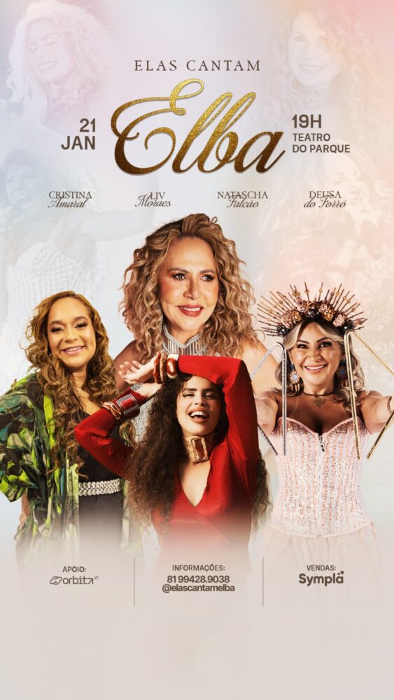 O show apresenta releituras de clássicos consagrados na voz da artista paraibana, celebrando sua contribuição à música brasileira. Os ingressos já estão à venda pela plataforma Sympla pelo link: https://www.sympla.com.br/evento/elas-cantam-elba/3181238