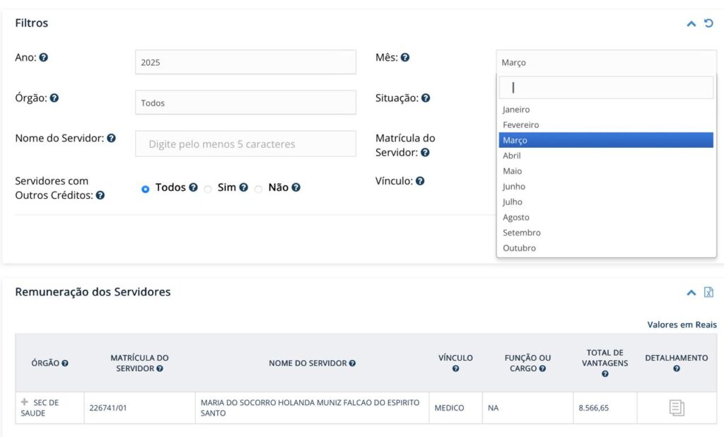 Atualmente, o salário dos deputados estaduais pernambucanos é de R$ 34,7 mil, mas verbas indenizatórias turbinam esse valor. Já como médica, Socorro Pimentel embolsou R$ 8,5 mil mensais entre julho de 2024 e março de 2025, o que, somado ao 13º salário proporcional nos dois anos, chegou a R$ 96.188,59. Os dados são do Portal da Transparência.