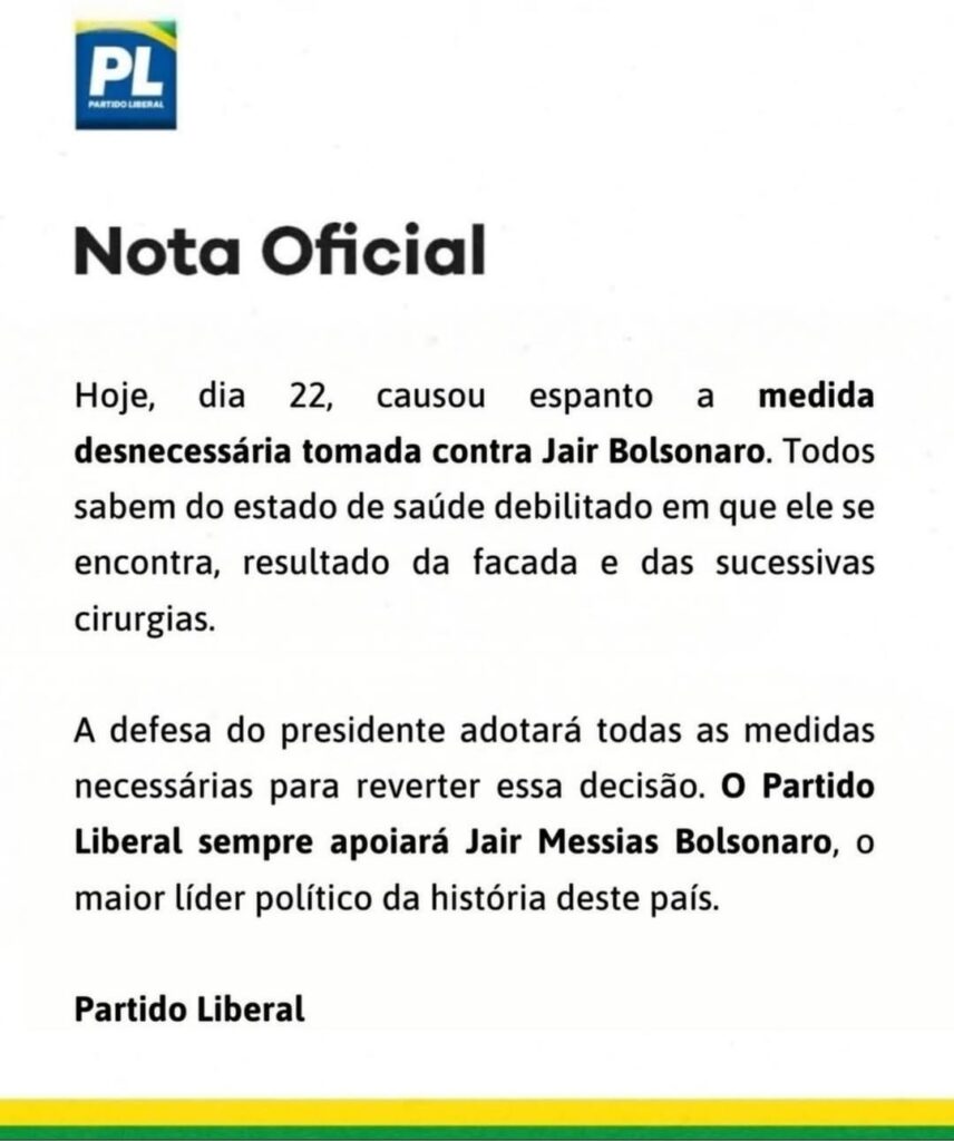Já o deputado Alberto Feitosa publicou no Instagram na rede X, antigo Twitter, as seguintes frases: “a prisão de Bolsonaro é no dia 22, a multa foi de 22 milhões e o número do partido é 22. Esse ‘juiz’ se utiliza de ‘pitadas de sadismo e psicopatia’, tudo ardilosamente planejado. Fica claro quem é o responsável pela destruição da justiça e da democracia brasileira”.